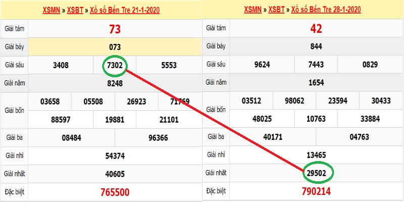 VD: Ngày 12/6/2020 trong kết quả ta thấy Vĩnh Long có giải ĐB là 072971, số 97 kẹp giữa 2 số 1, ngày 15 lô Đồng Tháp về 97.
